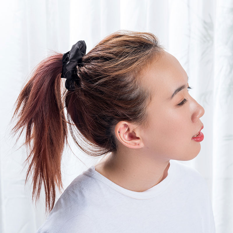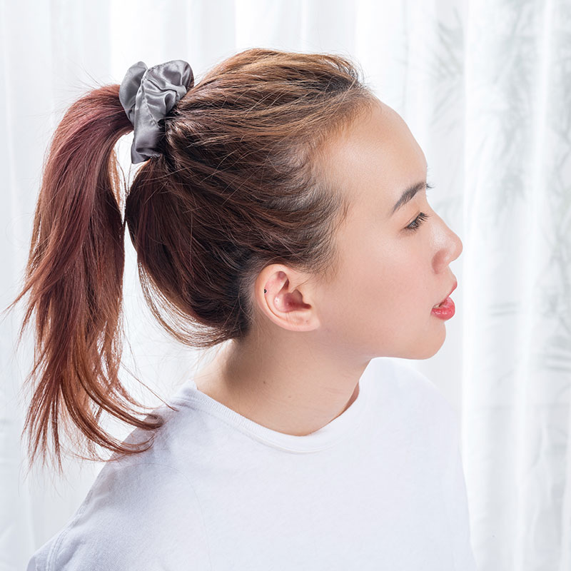 Silk Skinny Scrunchies yog tsim los ntawm tib lub siab zoo ntshiab txhob lo lo ntxhuav zoo li peb cov tog hauv ncoo nrov. Zoo meej rau koj cov plaub hau, lawv tuaj hauv 3-pob xim (Gold, Pink thiab Dub).